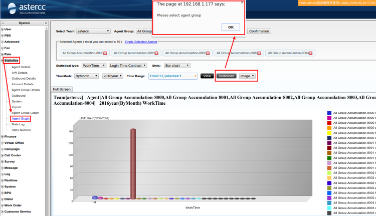 Repaired the bug if you download the image or PDF, it will popup “select agent group” although you have selected the agents and “All Group Accumulation” on the [Agent Graph] page.