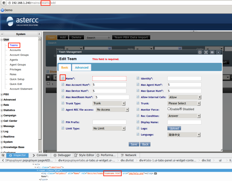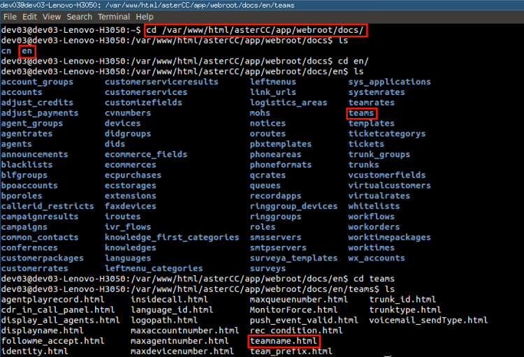 The files are under /var/www/html/asterCC/app/webroot/docs,you can find the page when enter the corresponding language directory:eg [User]→[Teams]