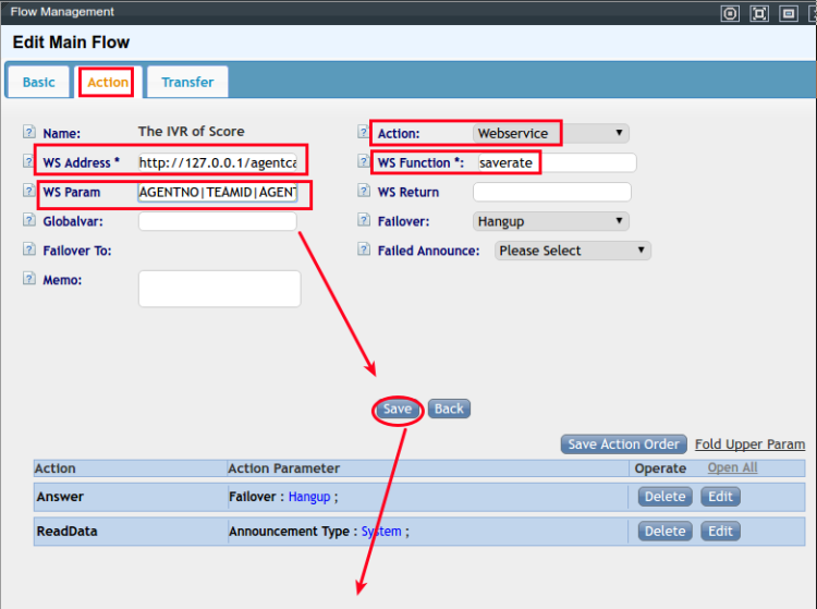 Last action but not the least,as we use the webservice in asterCC system,so fill the blanks with specific content as follows: