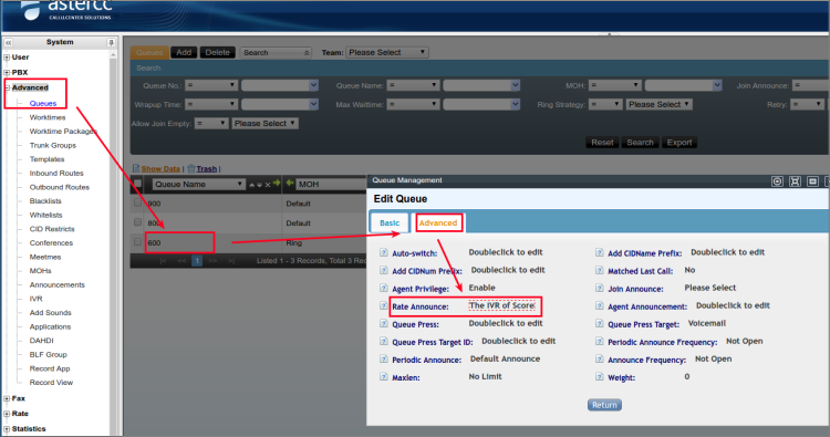 Double-click the [Advanced]→[Rate Announce] under [Advanced]→[Queues] directory,as follows: