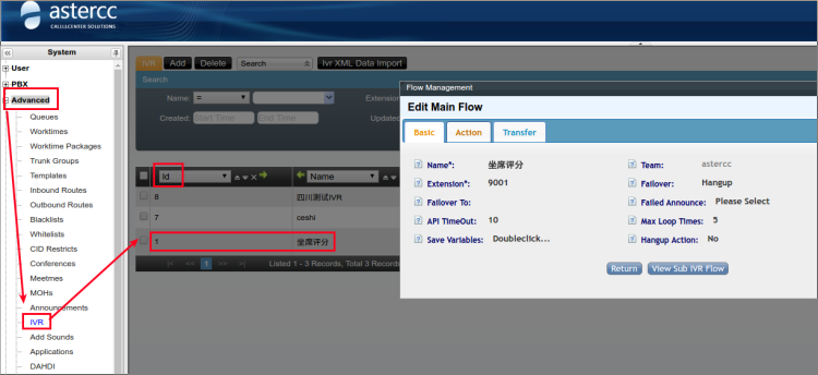 In asterCC system,there is a default IVR of after call survey for agent,but that's a Chinese version,so we should create a new one to implement the survey function.