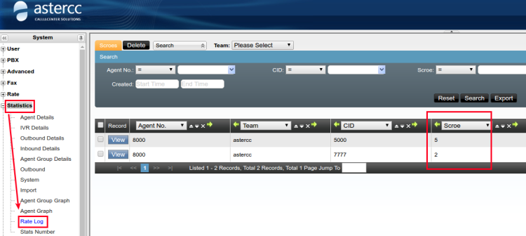 You can enter the [Statistics]→[Rate Log] directory below to evaluate agent: