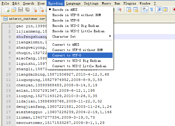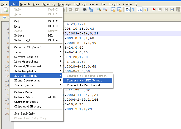 Open your file in Notepad++, do as the picture shows:
