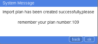 Click the “The data into the table” button, you will be prompted the import is done and shown the plan number.