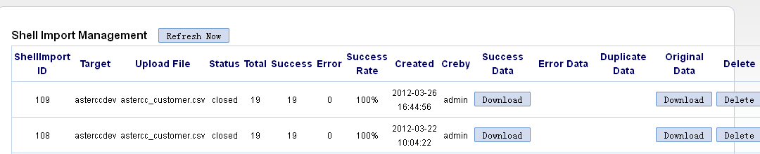 “Download” would appear when the data is imported. If you are notified a failure or a repeated download, you need to back to the compaign management of that customer package and check the information.