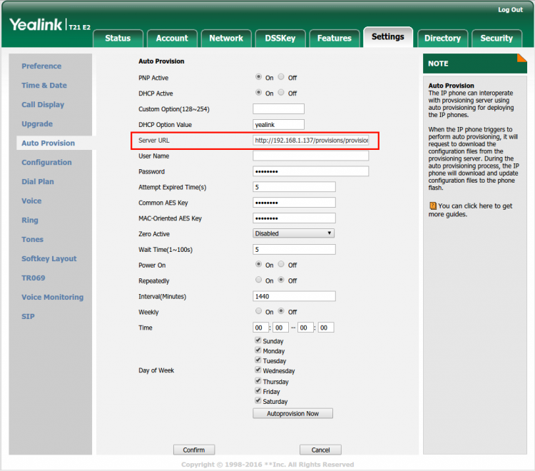 • Login yealink phone configuration page → [Settings] → [Automatic Updates] → “Server Address”