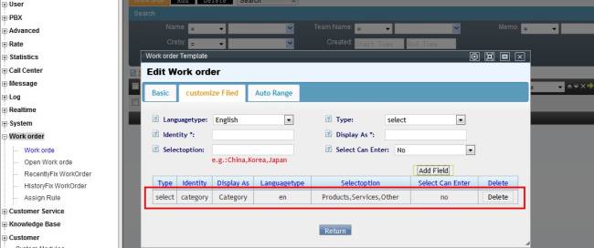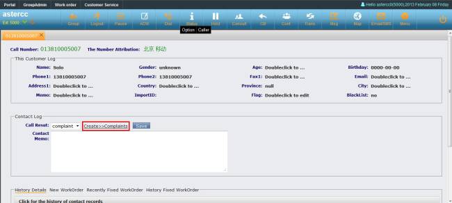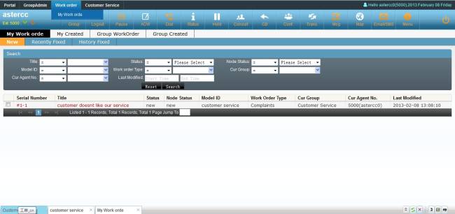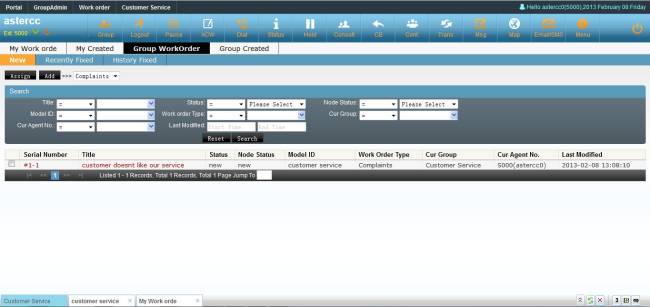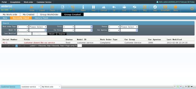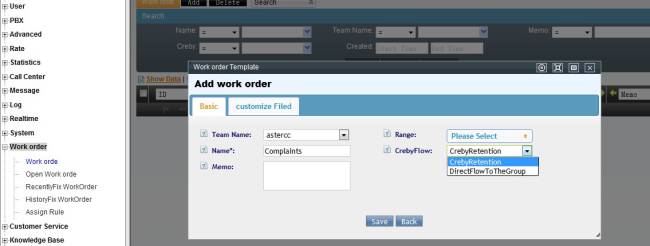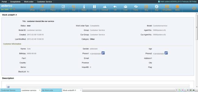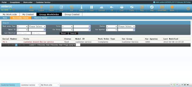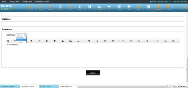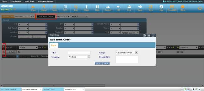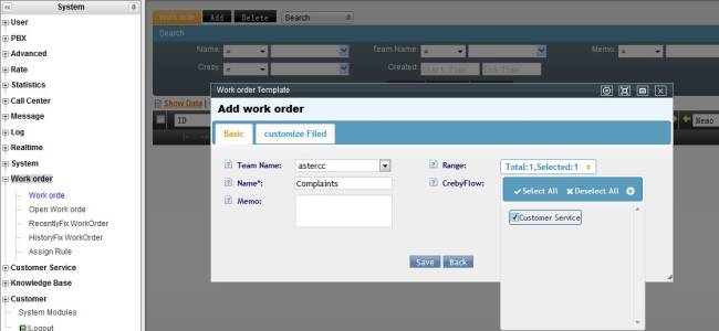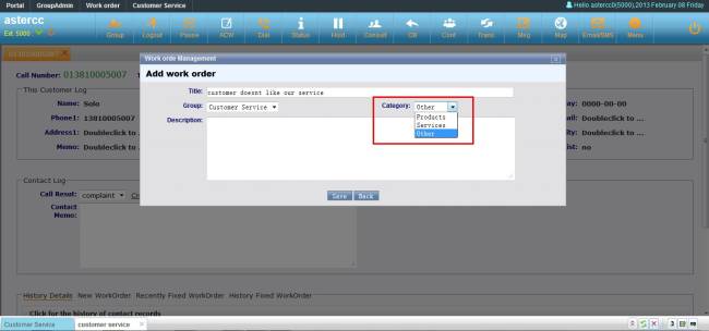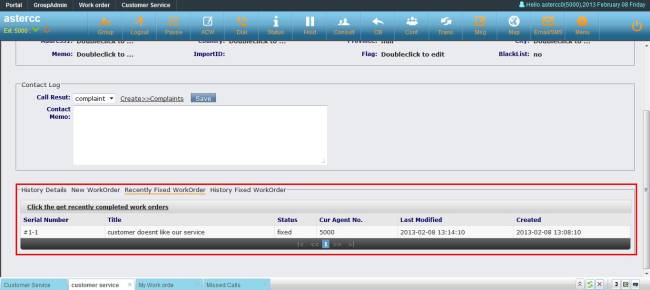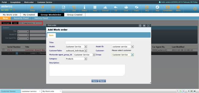 Agent could create work order from customer service popup page