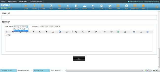 Group admin could set if a work order is done, he can choose “Verify Failed”, return the work order to agent, or “Verify Success”, close the work order or send it to another group