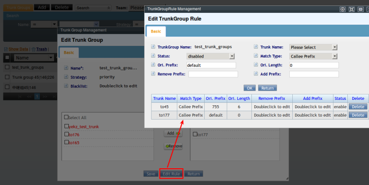 Add trunkgroup rule