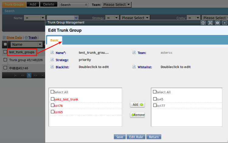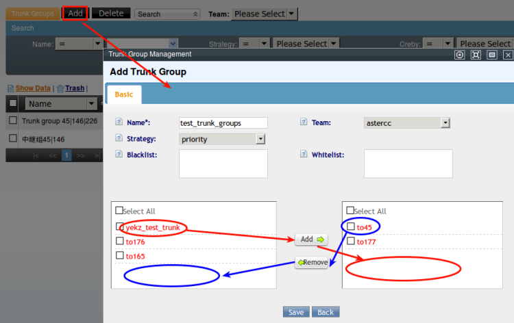 Cilck add to open the trunk group add page.