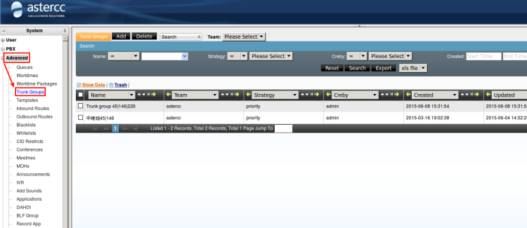 On the leftmenu,[ Advanced ]→[Trunk Groups],open the page