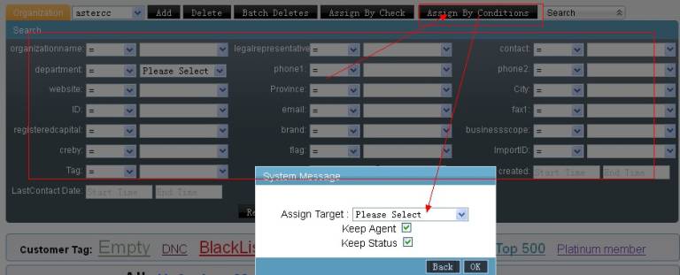 2.根据搜索条件批量分配,和批量删除一样,需要多次少量进行,防止程序执行超时,每次建议不超过3000条。