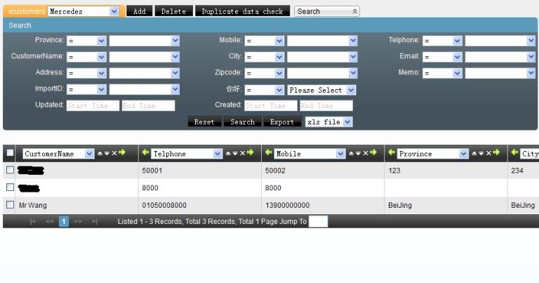 左侧管理列表 虚拟呼叫中心 –>客户管理,进入下图所示页面