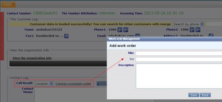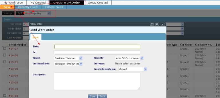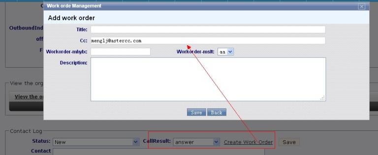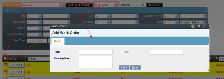In asterCC, there're two modules which could work with work order: Campaign and Customer Service.