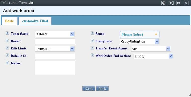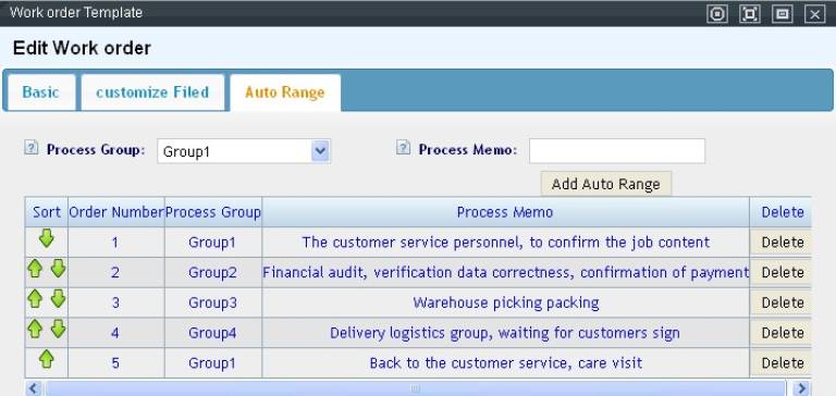Range: Define the agent groups which could process this work order (invalid if you configured work flow)