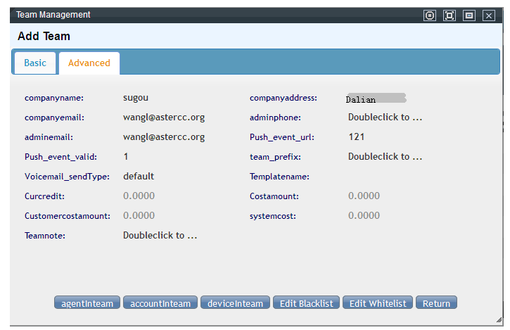 System cost: The cost of the team within the system, whose rate is the system's rate. Namely, the cost the phonecalls of the team create to the system. Curcredit, cost amount, and customer cost amount are not related to the team amount adjustment.