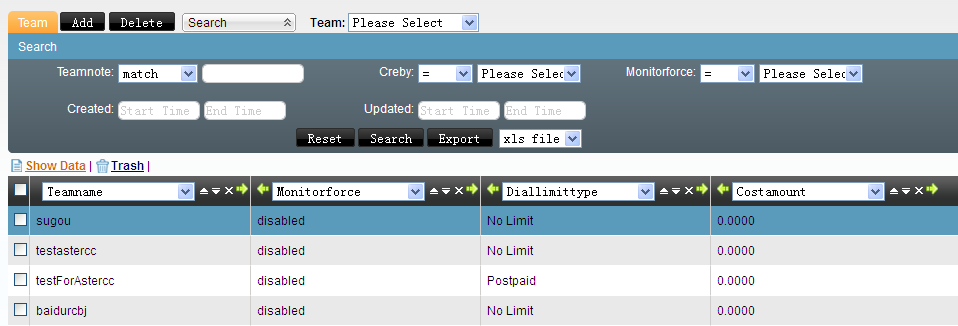 The characters in black can be edited, and the grey ones are only for view. There are four more fields appearing in the edit page: Curcredit: The total amount of the cost since last time you have paid, whose rate is the team's rate accordingly. And this is how much the team should pay to the system. When the team account is adjusted, the Curcredit will be changed too.