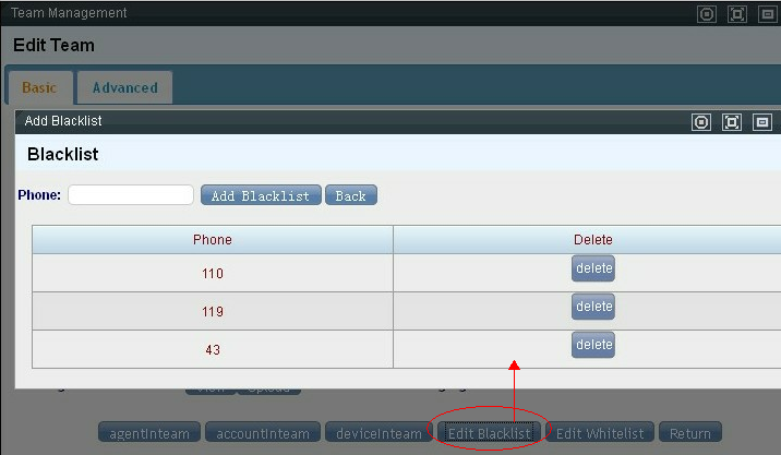 Edit blacklist: Click on the blacklist button, and the blacklist settings interface appears: