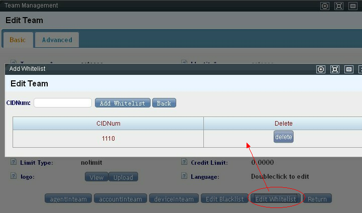 Edit Whitelist: Click this button to enter the white list settings interface: