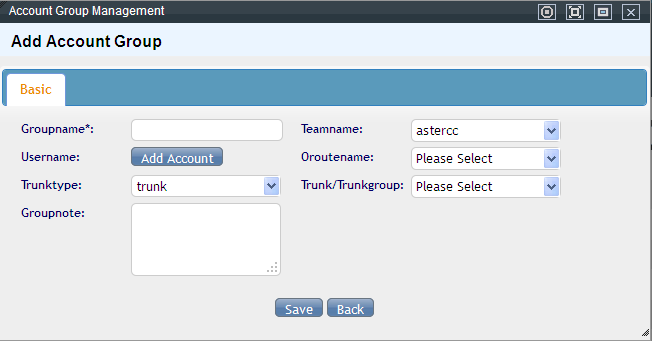 The account group is used to help Rate management → Agent incoming call rate management. You can put the accounts with the same policies into a group to unify the charge calculation, which can simplify the management of the numerous accounts and agent rates.