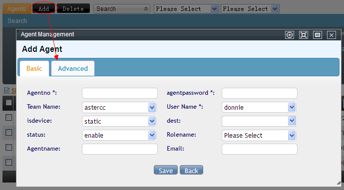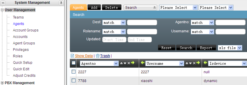 Log in during the call related operation, the agent work mode, so for each account to add agenting job number, and set the queue and agent group, agent job number plus extension can be used for agenting page, click to call and receiveACD queue assigned to the call of the agents.