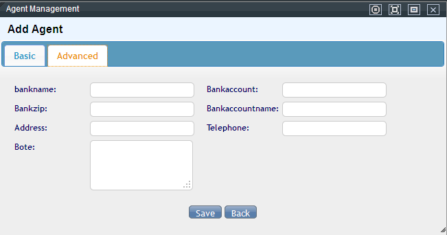 Click the “Advanced information” button, you can fill more agents, all information completed, click on “Save” button