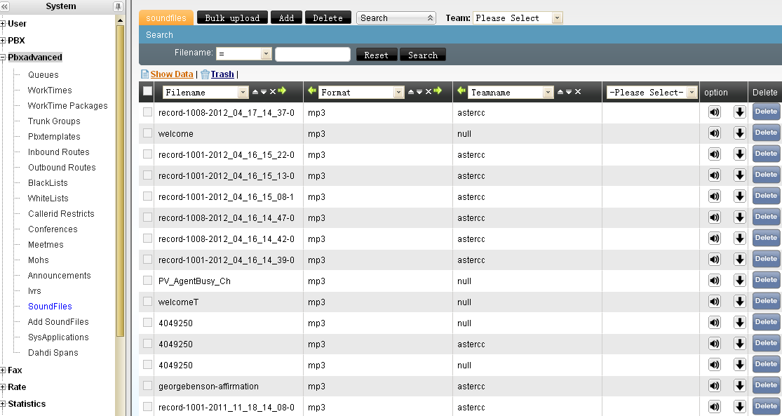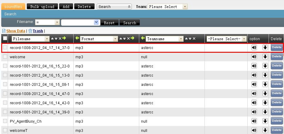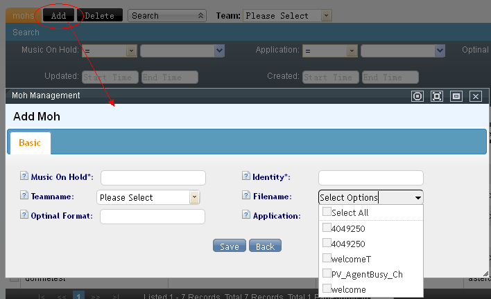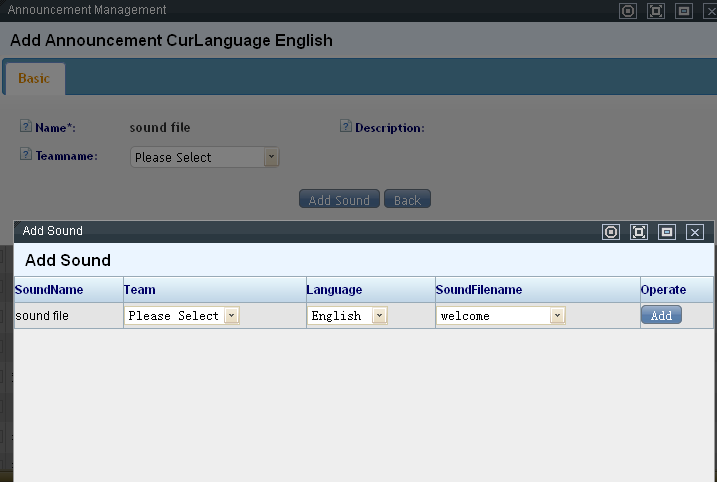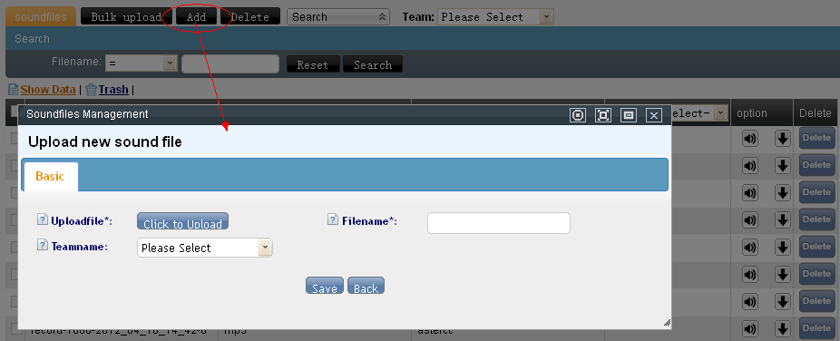 Choose a name for the moh. Identity: enter English here only, for identification from other mohs. Choose a team or many teams for the sound file. The mohs will be palying according to the order of the list.