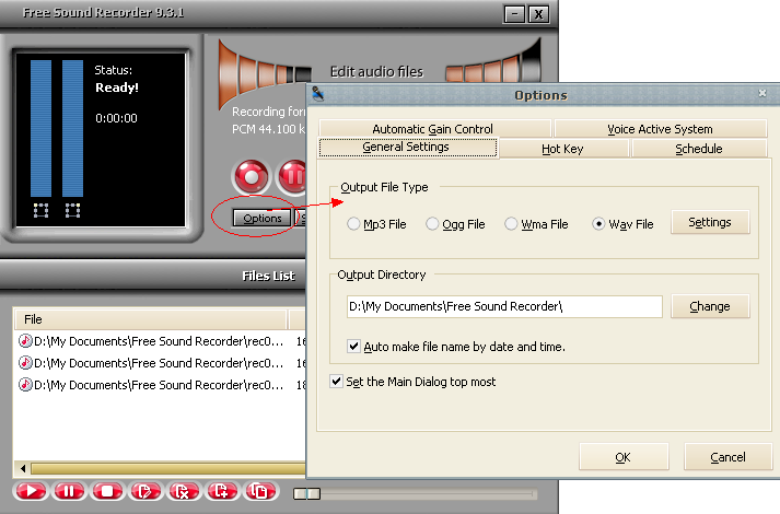 Click “Option” to set the format, hot key and other functions of the recording file.