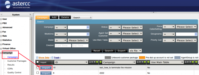 When we dial out using the phone number in customer packages,the operation of importing or deleting customer data will cause the astercc slowing down.So we should terminate the operation ongoing.