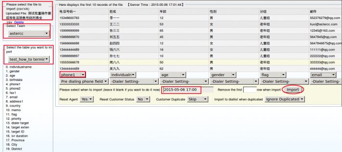 Open [Campaign]→[Campaigns],click [Import],and then select the file to import,team and table you want to import。At last,“select when to import” and click [Import].