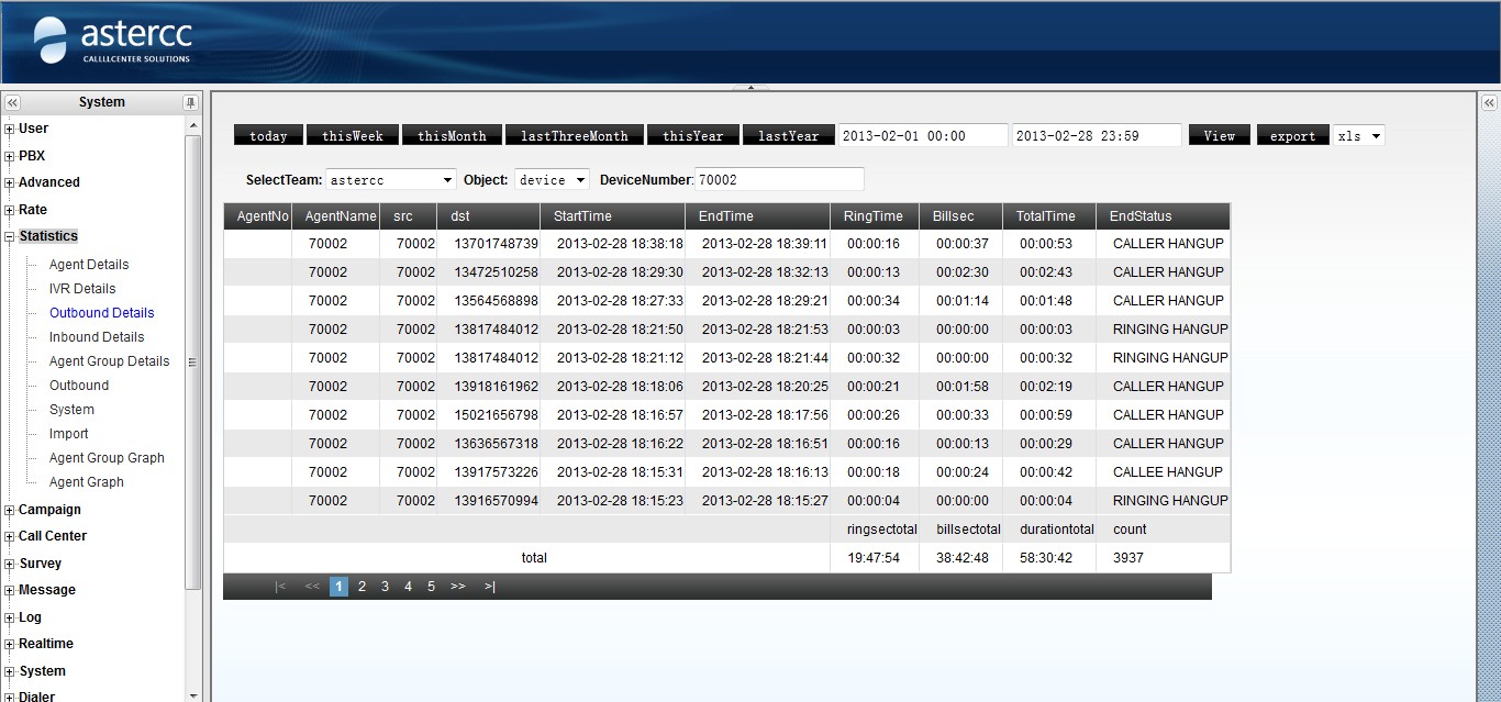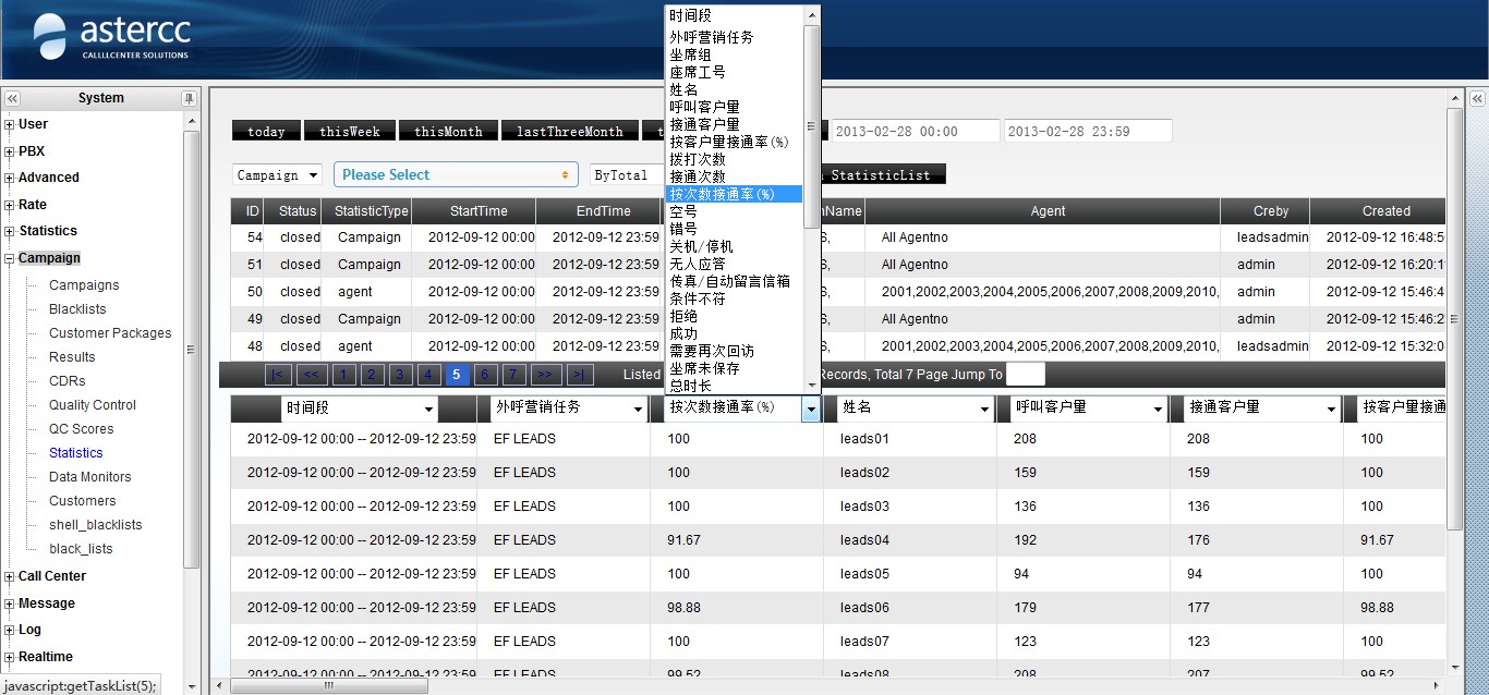 asterCC commercial call center system provides a rich type of statistics reports, users can view the report according to their needs, and here we list some common useful reports.