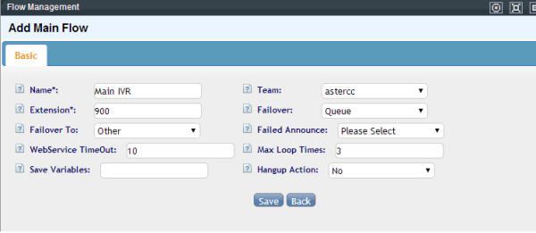 Go to Advanced/Announcements page , and click “ADD” button to add a main ivr flow.