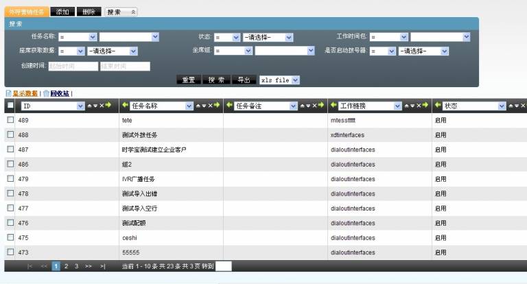 左侧管理列表 外拨营销–>外拨营销任务管理,进入下图所示页面
