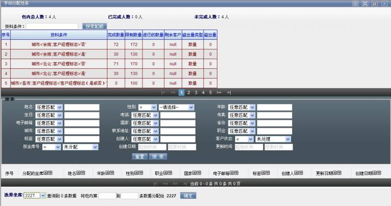 可以经过搜索查询后再手动为坐席分配客户。选择需要分配的坐席,输入序号字段对应的数字,就可以为该坐席分配客户。