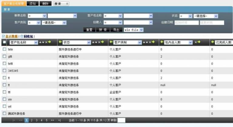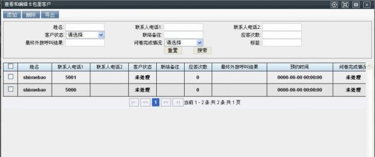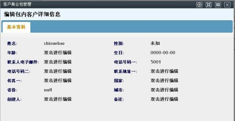 可以对包内数据进行添加,删除和导出。双击某条包内客户记录,可以修改该客户在分表中的信息。