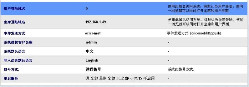 用户登录域名:使用此域名访问系统,将默认为用户登陆。使同一浏览器可以同时打开坐席和用户界面.