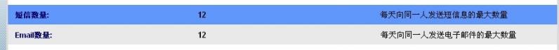 短信数量,Email数量,限制每天向同一个电话号码或邮件发送信息次数。
