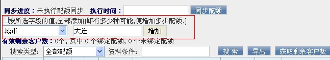 同步配额:仅限于客户资料类型的配额使用,把配额设置同步到客户资料中,保证坐席仅获取符合配额的客户进行访问。