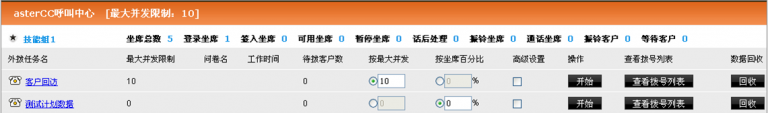 当按最大并发模式拨号时,只有单次拨号上限和预拨号间隔起作用。 操作:控制拨号器启动或关闭。