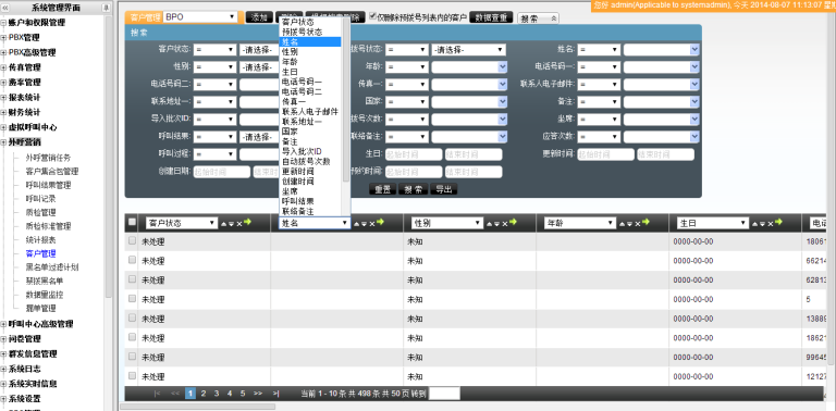 • 客户管理中列出的字段和搜索字段