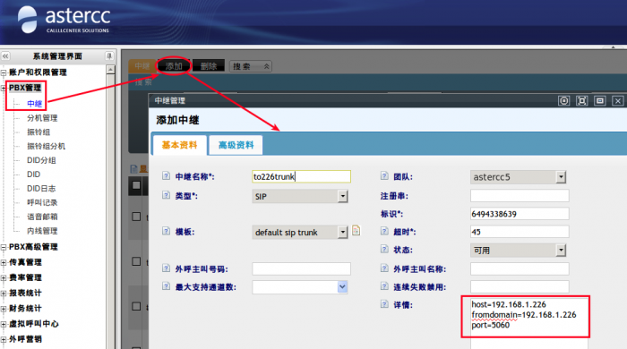 将以上所有设置在B服务器AsterCC系统做相应的配置即可