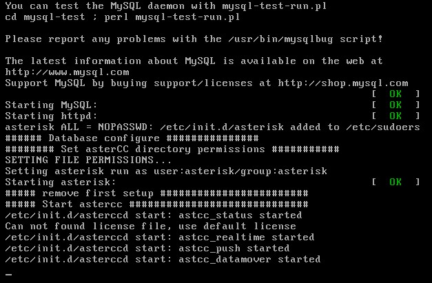 8.重启后,开始自动安装Asterisk,Apache,MySql,Astercc等。