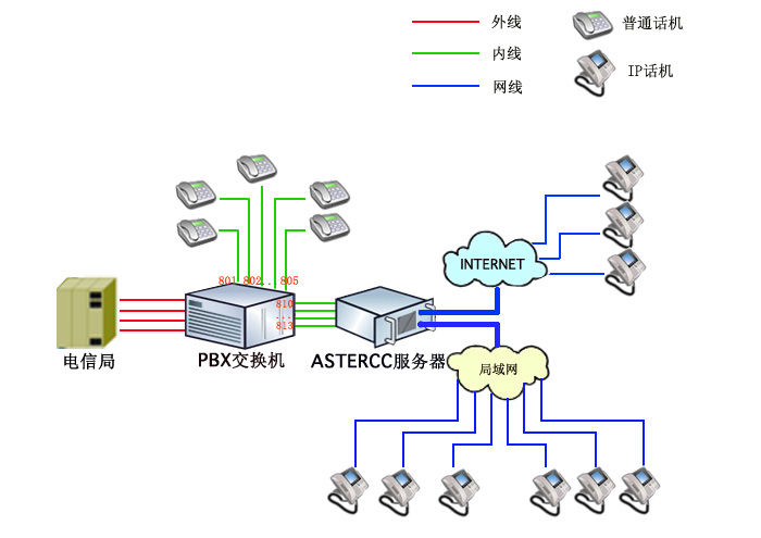 有了astercc可以为你免去这些烦恼,你只需要一部交换机,但你可以拥有无数条内线分机,内部电话,无需任何话费支出。