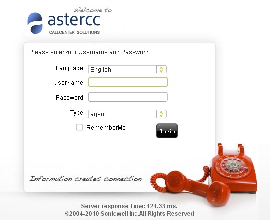 用计算机浏览器访问asterCC的服务器地址,进入登录界面