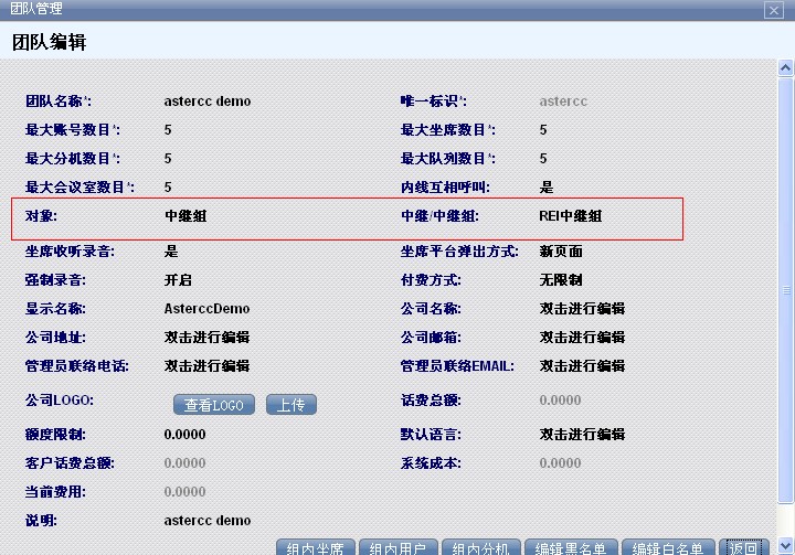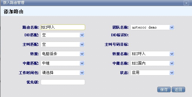 选择团队,为该团队添加拨入路由,我们的团队是astercc demo