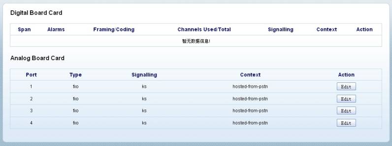 管理系统 左侧列表 选择 PBX高级管理–>板卡管理