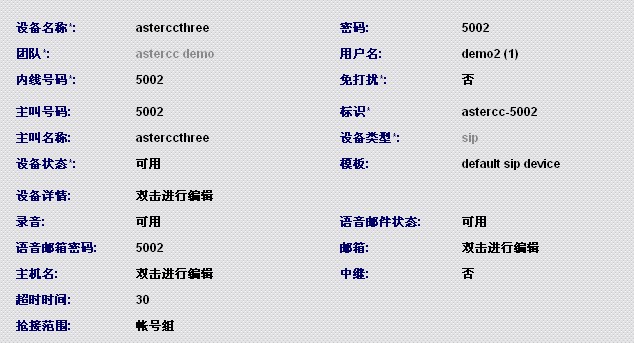我们可以看到Astercc为我们准备的4部免费分机,选择一个可用分机进行双击
