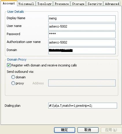 Domain:填写系统的主机地址 如果你的计算机在内网 就写astercc服务器使用的内网IP,在外网就要写外网IP了。