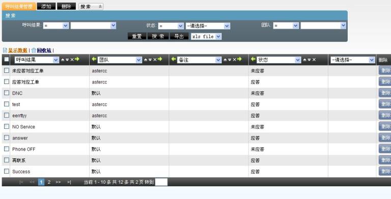 团队:如果指定团队,那么此呼叫结果只有该团队下的坐席才能看到并选择。