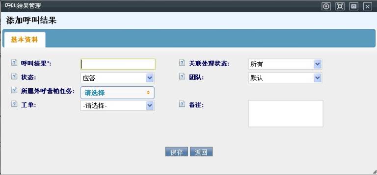 点击【添加】按钮,打开呼叫结果添加界面
